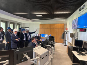 كذلك زار الوزير مختبر الشركة المذكورة وتفقد هنا أنواع اختبارات مختلفة هادفة لضمان كفاءة وأمانة الأنظمة الكهربائية.