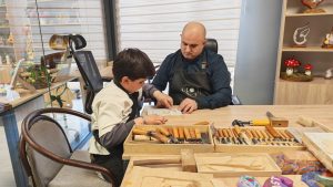 وبفضل تميزه تحول من مستفيد يتلقى التدريب إلى مدرب في فرع “بيت دوستر في قراباغ” بمدينة بردع، حيث ينقل اليوم خبراته لجيل جديد من المبدعين محولاً أفكاره ومشاعره إلى منحوتات خشبية تخلد كأعمال فنية وتدب الحياة في هذا الفن العريق.