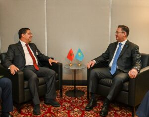 New York, 26 septembre 2024 – En marge de la 79e session de l’Assemblée générale des Nations Unies, une réunion bilatérale a eu lieu entre le Vice-Premier ministre et Ministre des Affaires étrangères de la République du Kazakhstan, M. Murat Nurtleu, et le Ministre des Affaires étrangères, de la Coopération africaine et des Marocains résidant à l’étranger du Royaume du Maroc, M. Nasser Bourita.